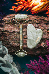 Tento nádherný dvojitý roller, vyrobený z jadeitu, masíruje pokožku a svaly obličeje, krku, očí a dekoltu . Je ideálním způsobem jak zkrášlit každodenní rituál v péči o pleť zpomalit tak na chvilku čas. Kámen nejenže působí uklidňujícím dojmem , ale během masáže se zvyšuje vylučování přebytečné vody z pokožky.